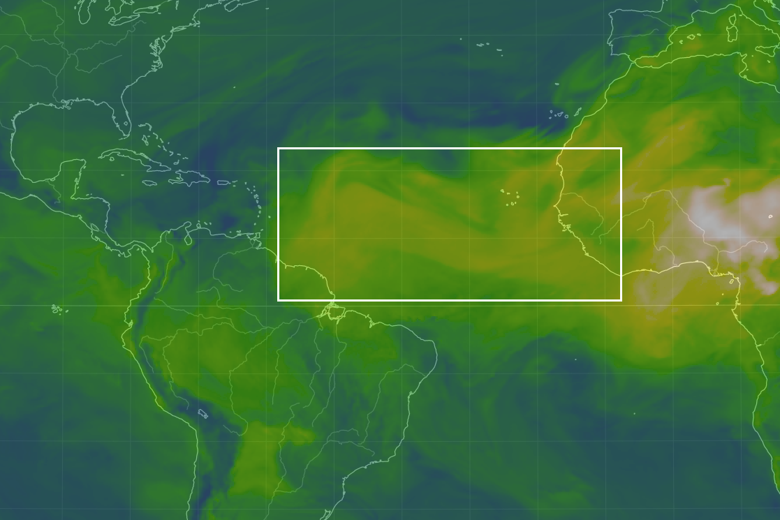Dominicana la primera nube significativa de polvo del Sahara, la cual se extiende desde el oeste de África hasta el Caribe" y se espera que sea desde las 8 de la mañana de hoy Jueves.